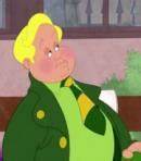 Despite being a child, the animated film depicts him with blond hair, a dark green suit with green buttons, a green collar shirt, and a green striped tie.