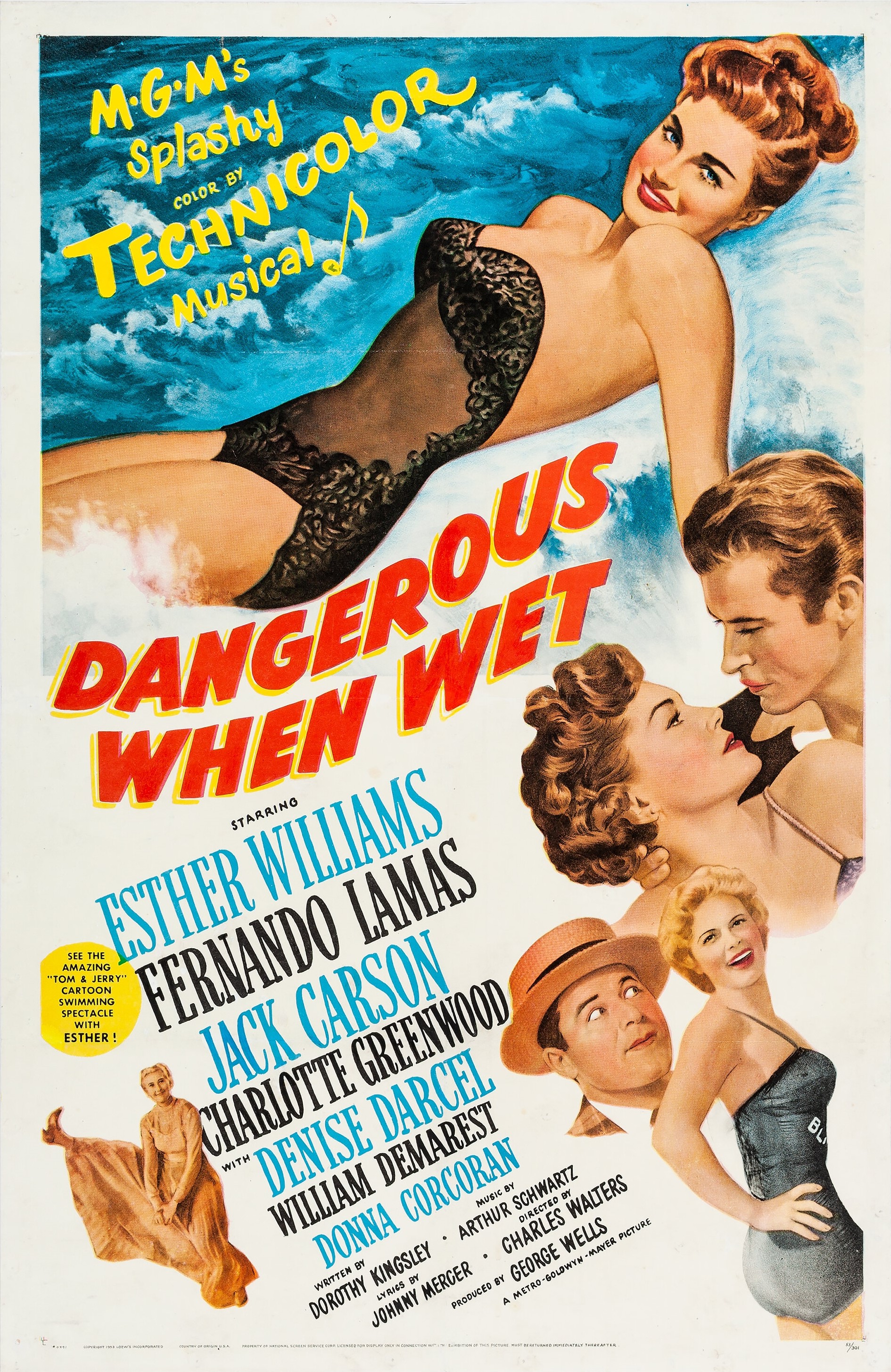 Dangerous When Wet is a 1953 American live-action/animated musical comedy film. It includes an animated swimming sequence starring Esther Williams with Tom and Jerry.