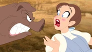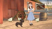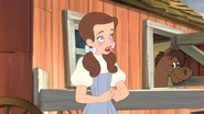 In the 2016 sequel, Tom and Jerry: Back to Oz, Dorothy returns once again as the central character but this time goes back to the magical land of Oz to help her friends confront new challenges. The familiar animated style and comedic elements of the series continue, allowing Dorothy to navigate her adventures with Tom and Jerry in a blend of excitement and humor. Despite the comedic backdrop, Dorothy still embodies traits of bravery and kindness as she rallies her friends together to face new threats in Oz.