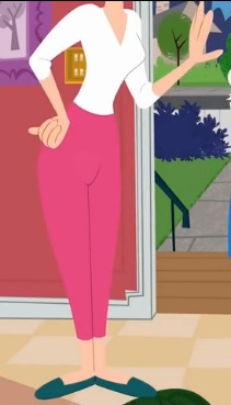 Ginger is taller and slimmer than her husband. She is habitually seen dressed in a white t-shirt, pink sport jeans, and peacock-colored slipper-like flats. Like her husband Rick, her face is never seen except in the flashback shown in Tap Cat. Habitually, her hair is likely to be still ginger, hence the name.