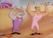 At Rocky's Gym, Spike tries to lift weights, which He does for a few seconds, until He falls through the floorboards, at the treadmill, Spike suggests His son to increase the speed, but the speed is too much for Him, and after Tyke turns off the treadmill, Spike grabs on to a pommel horse, grabs a bar making a couple of flips, and lands on a pad. and while His father was dazed, Tyke sees the beach bully, but Spike is thinking about leaving before too long, but the bully spots Him and was impatient to know when His offender can settle things. Tyke declares Tomorrow at the beach. as Spike tries to chicken out, the bully says that if Spike doesn't show at the beach, He'll come to Spike's house. Tyke then tells the bully directions, but his dad covers His mouth.