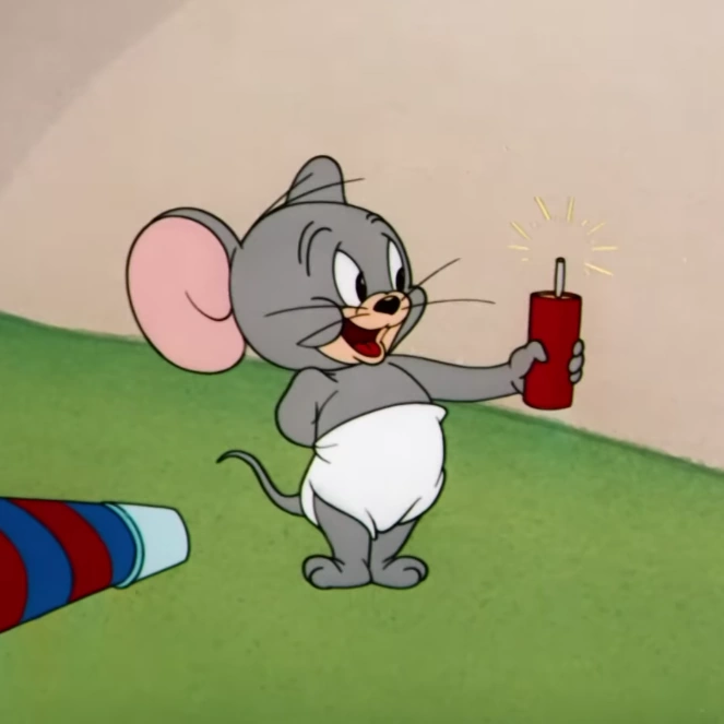 Nibbles "Tuffy" Mouse is the nephew of Jerry Mouse and Geraldine Mouse, grandnephew of Jerry's mother and cousin to Sniffles, Dinky. He is a young gray mouse who wears a diaper. He is the most recurring relative in series.
