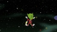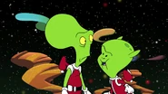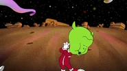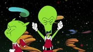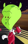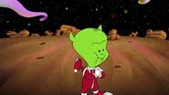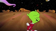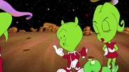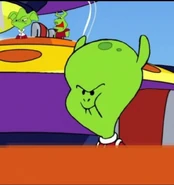 Martian Guard 2 was first seen when he join Peep together with a Martian Dog named Ubu, a Martian named Martian Guard 1 and Grob, and Martian Guard 2 think at first that Jerry might taste good, but later, Martian Guard 2, together with Martian Guard 1 and Grob mistake Jerry for The Great Gloop, a mysterious figure from their ancient scrolls, while Peep doesn't think this and thinks that Jerry is just a cute alien. Martian Guard 2, Martian Guard 1 and Grob decide to bring Jerry to their king, King Thingg. But on the way, Jerry and Peep are abducted by a Pootsnarfle, and Martian Guard 2, Martian Guard 1 and Grob goes after Pootsnarfle to save Peep and Jerry, Martian Guard 2, Martian Guard 1 and Grob make it drop Jerry and Peep.