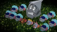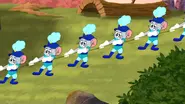 A gray mouse resembling Tuffy dressed in a blue palace guard uniform. His outfit is composed of a three-tone jacket with teal blue pants, gorget, and plume supplemented by ultramarine belt, boots, and a chako with a golden triangle.