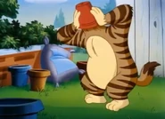Tom gets the unexpected help of Clyde to go after Jerry after freeing His head from a flower pot.