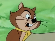 - The squirrel speaks in a voice (courtesy of Leonard Weinrib) reminiscent of Bert Lahr, best remembered as The Cowardly Lion from The Wizard Of Oz (MGM, 1939), whose own voice inspired Daws Butler's vocal interpretations of Snagglepuss and Jonathan "Mudsy" Muddlemore of The Funky Phanton (ABC, 1971-73). (Tom and Jerry voice actor John Stephenson povided similar vocalizations for Rex the lion in Episode #80-23, "The Hypochondriac Lion".)