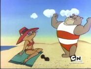 In her second appearance, Beach Bully, Yvonne makes a minor but notable appearance. Retaining her original traits from Muscle Beach Tom, she is depicted at the beach, impressed by bodybuilders lifting weights, particularly watching Spike as he shows off his strength.